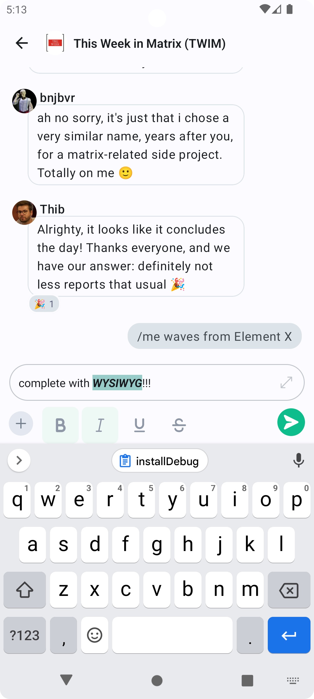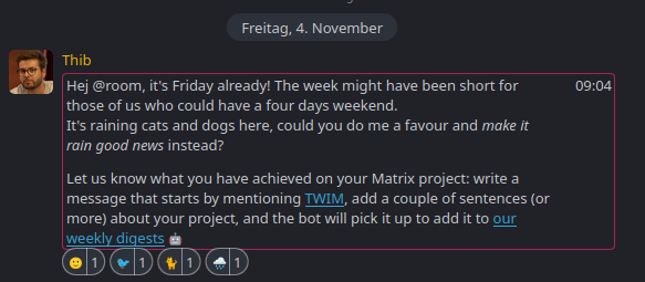 See you next week, and be sure to stop by #twim:matrix.org with your updates!