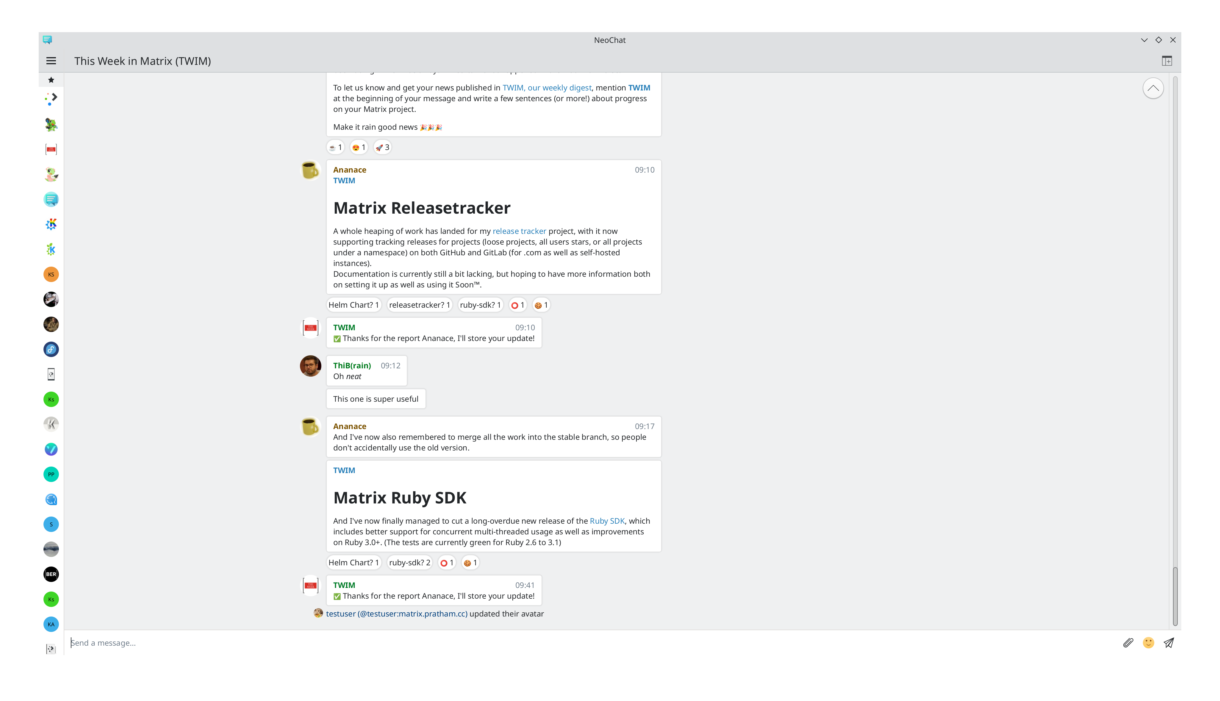 We're also making progress on the end-to-end encryption support where we hopefully will soon have news from libQuotient's side.
