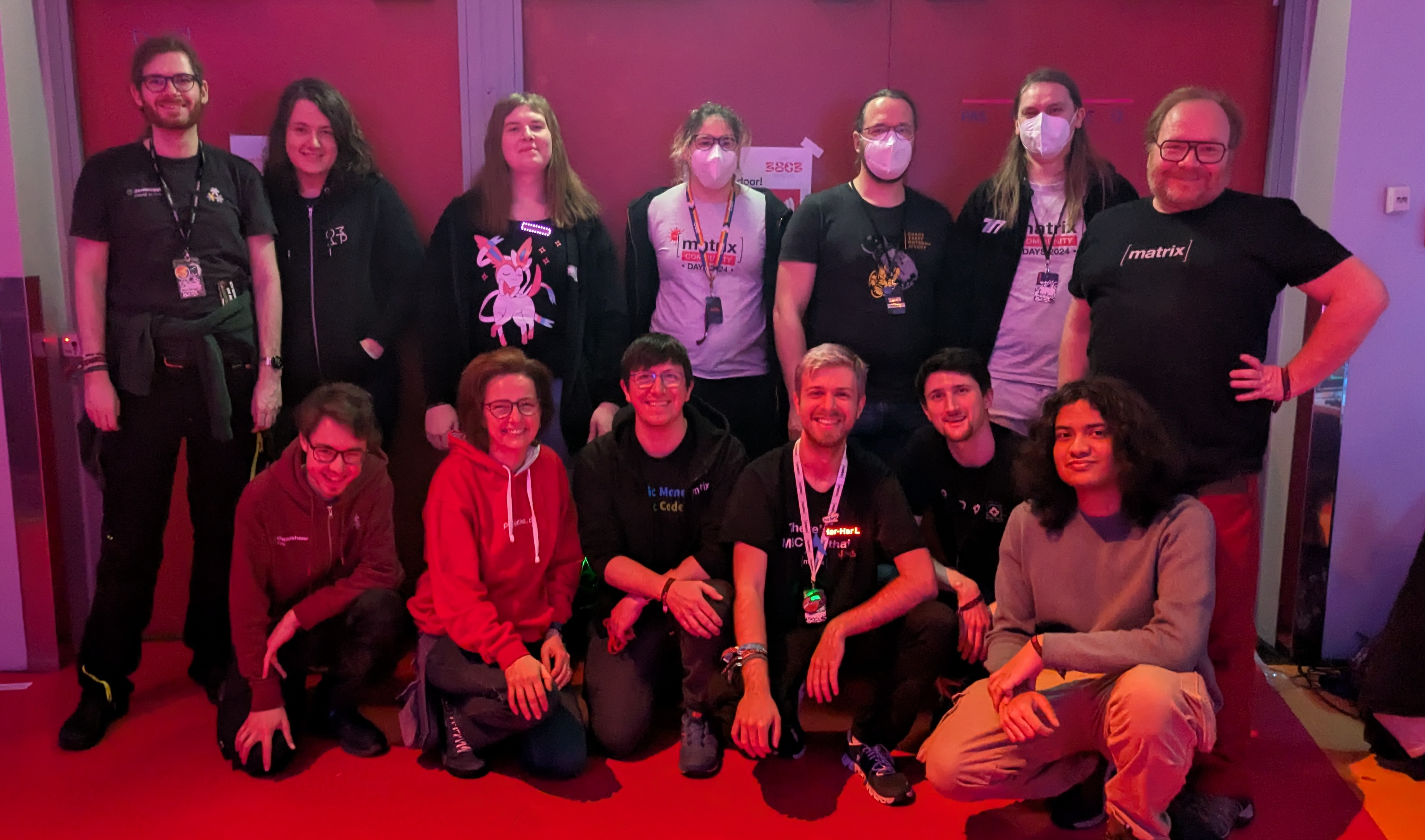 Dear TWIM, I'm writing you from the train back home after having visited 38C3 in Hamburg, the 38th edition of Chaos Communication Congress by the German Chaos Computer Club. Like yesteryear, #community-events:matrix.org organised the matrix community assembly there; you can imagine it as a kind of crossover of the Matrix #fosdem-2025-barcamp:matrix.org booth and a workshop area. We offered some "office hours" for people but many also dropped by around the clock with their questions, to get some of the official Matrix.org hoodies or T-shirts we could offer (thanks Thib for making this possible!), or simply to celebrate and socialise. We had a small assembly project driven by Nico who brought the materials to build an LED cube which once set up visitors could control through Matrix chat commands. As a small game, we hid small plastic rabbits around the whole congress center, which attendees could find and bring back to us to receive our wonderful assembly badge designed by Nadine. We also offered 2 workshops, one being another instance of Tune Your Chat, a project to collect all the neat small tips and tricks to tweak your Matrix experience, and for the other we were joined for a discussion by the creators of the "Standardised Messenger Audit β Frontend" catalog from the office of the German Federal Commissioner for Data Protection and Freedom of Information, published earlier this year. And of course we also took another group photo! If you are interested in joining us next time or for one of the many events we visit in the meantime, you can join #chaosevents:matrix.org specifically for appearances at CCC events or #community-events:matrix.org for even more.