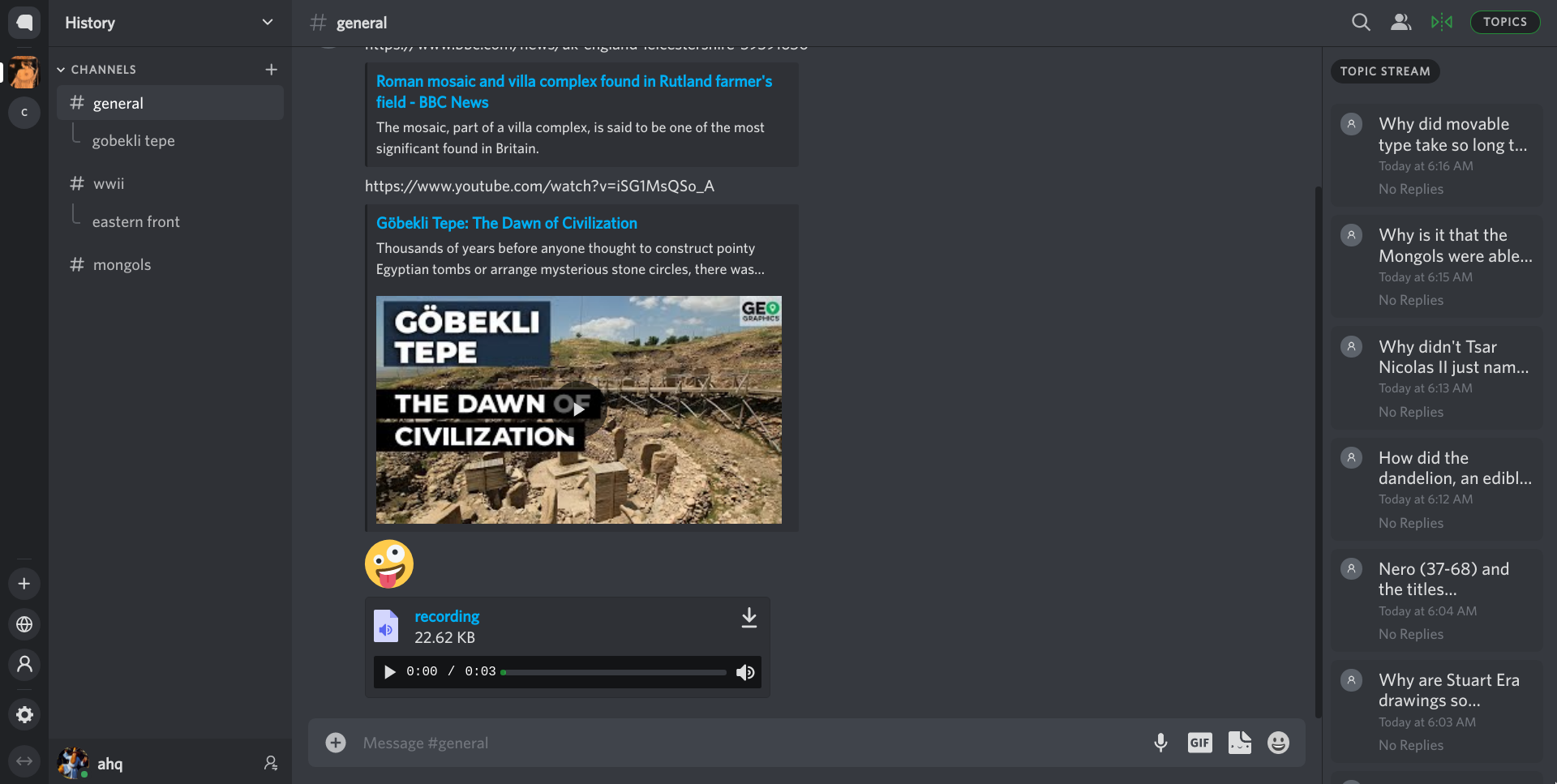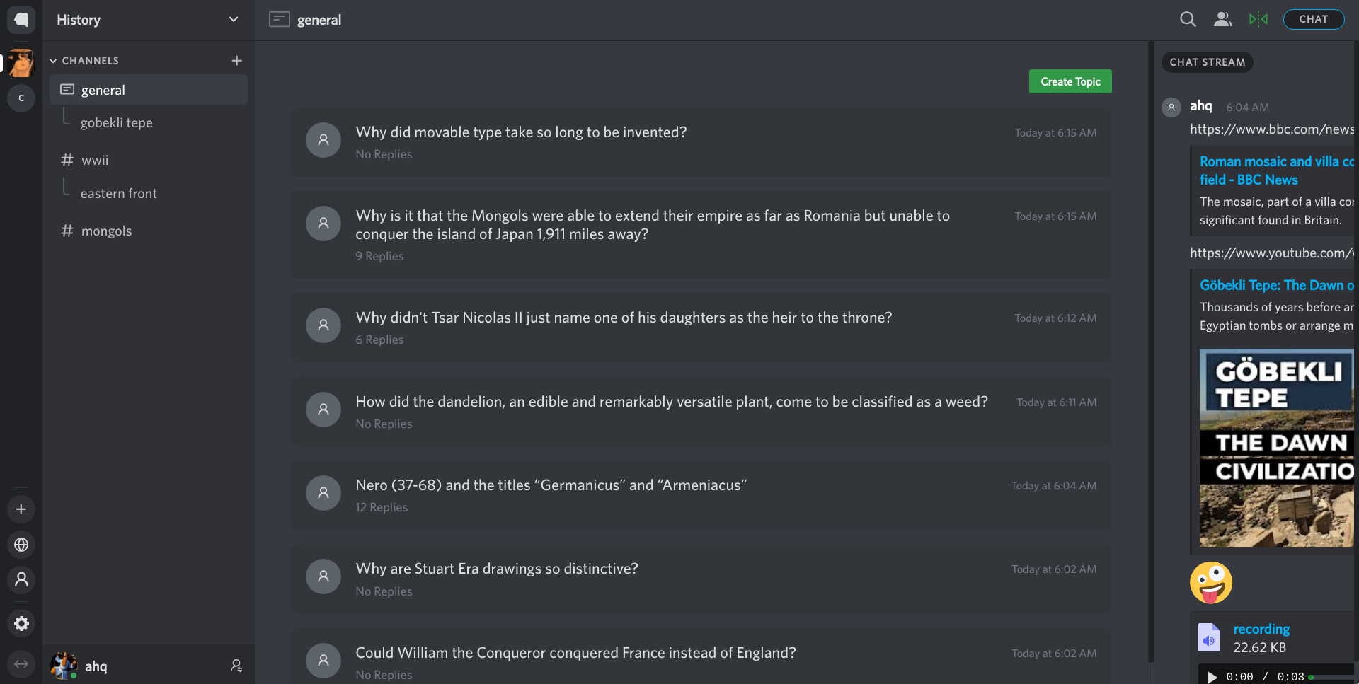So hereβs the thing ahq (dev) and I (product) have been working on: https://github.com/commune-org/commune Itβs a chat/forum hybrid. Still in pre-alpha, proof-of-concept stage.