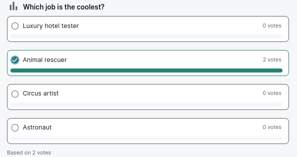 - Polls will be available behind Labs flags at first. We're excited to see people using it and weβre looking forward to hearing any feedback/comments.